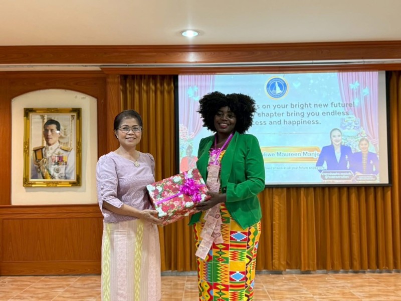 ร่วมแสดงความยินดีและมอบของที่ระลึกแก่ Miss Tekwe Maureen Manje ครูสอนภาษาต่างประเทศ เนื่องในโอกาสเดินทางไปศึกษาต่อ ณ ประเทศเบลเยี่ยม