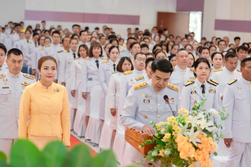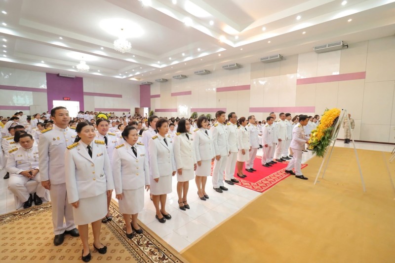 พิธีวางพวงมาลาในกิจกรรมน้อมรำลึกในพระมหากรุณาธิคุณ เนื่องในวันนวมินทรมหาราช พระบาทสมเด็จพระบรมชนกาธิเบศร